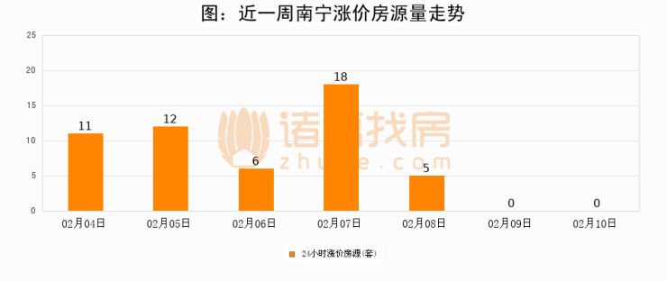 根据诸葛找房数据显示,南宁24小时涨价房源量为0套,较02月09日持平。