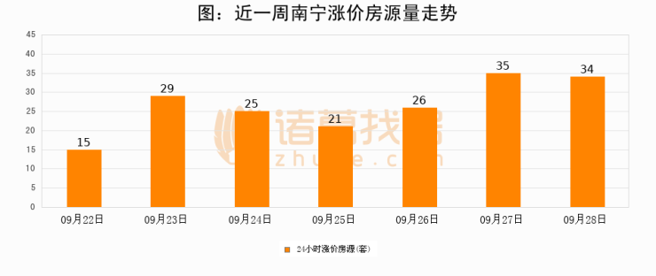 根据诸葛找房数据显示,南宁24小时涨价房源量为34套,较09月27日减少1套,环比下降2.9%。与此同时,涨价房源占比小幅回落,对于购房者来说是一个入市窗口期,购房者可抓住时机入市。