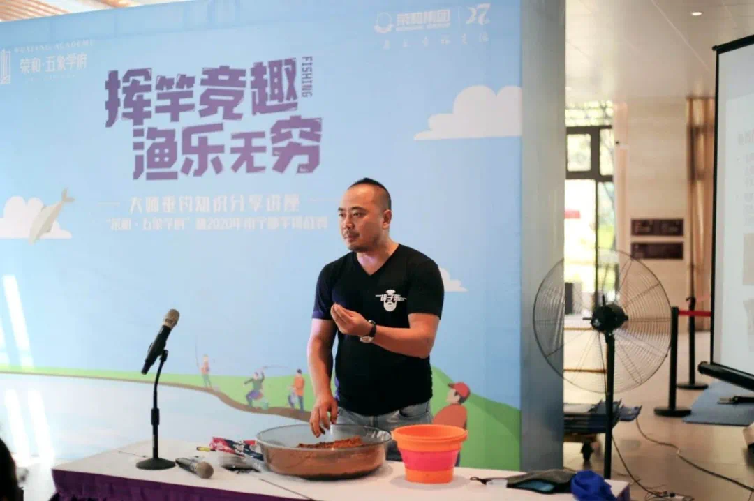 比赛当天9点,钓友们已经陆陆续续到场了。领取完物资,大家就纷纷入座。在比赛开始前,荣和·五象学府邀请了胡子陈给钓友们举办了一场钓鱼讲座。