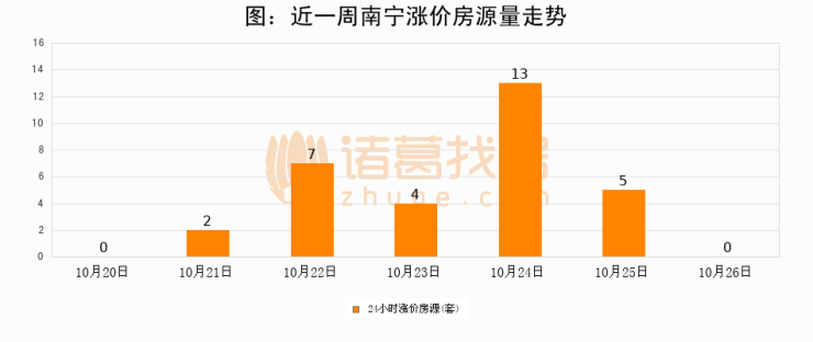 根据诸葛找房数据显示,南宁24小时涨价房源量为0套,较10月25日减少5套,环比下降100%。与此同时,涨价房源占比小幅回落,对于购房者来说是一个入市窗口期,购房者可抓住时机入市。