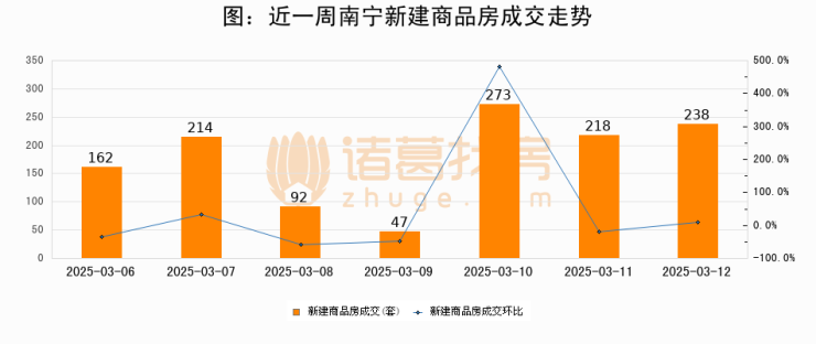【南宁成交日报】03月12日新房成交238套、二手房154套;涨价房源59套