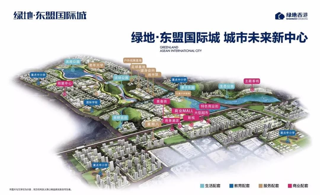 绿地以城市运营商高度,整合全球资源,规划打造商业Mall、风情商业街、花园总部办公、创智SOHO产品、酒店等丰富业态。立洋教育、CGV影城、派立方、天空之城、湘味天下、Le-Super超市、美吉姆等共20家重量级商家已抢先签约,绿地·东盟国际城将汇聚全球品牌,助力构筑南宁北中心CBD。2019年开工建设市民中心。