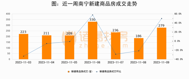 【南宁成交日报】11月09日新房成交279套、二手房87套;涨价房源7套