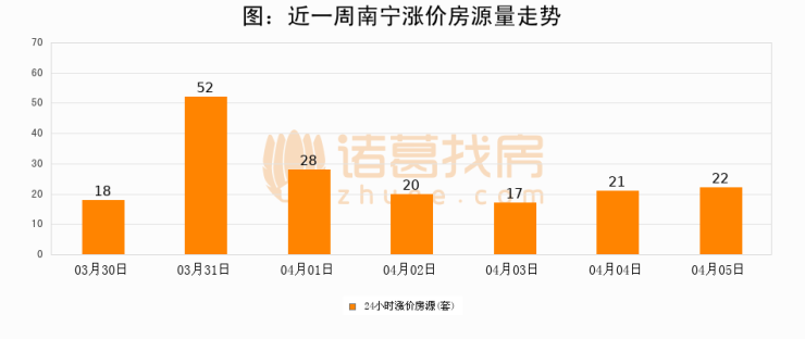 根据诸葛找房数据显示,南宁24小时涨价房源量为22套,较04月04日增加1套,环比上涨4.8%。与此同时,涨价房源占比小幅扩大,业主信心有所提升。