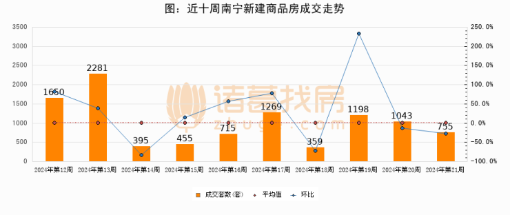 【南宁成交周报】第21周新房成交755套,二手房881套,涨价房源191套