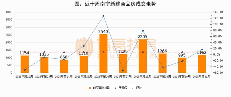 【南宁成交周报】第31周新房成交1162套,二手房734套,涨价房源193套