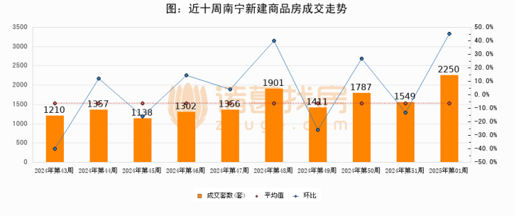 【南宁成交周报】第01周新房成交2250套,二手房1825套,涨价房源160套