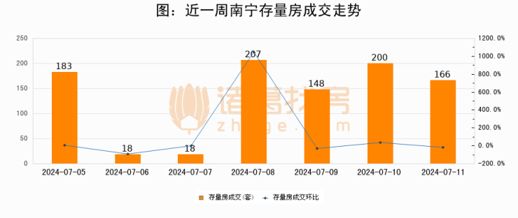 从存量房来看,2024年07月11日南宁存量房单日成交166套,比昨日减少34套,环比下降17%。从近一周存量房成交来看,南宁存量房日均成交套数为134套,07月11日单日成交166套,高于近一周平均水平23.9%。