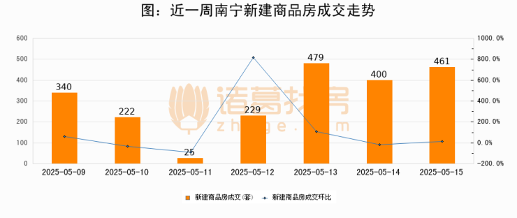 【南宁成交日报】05月15日新房成交461套、二手房190套;涨价房源29套