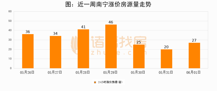 根据诸葛找房数据显示,南宁24小时涨价房源量为27套,较05月31日增加7套,环比上涨35%。与此同时,涨价房源占比小幅扩大,业主信心有所提升。