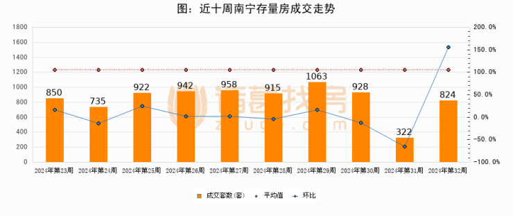 【南宁成交周报】第32周新房成交1735套,二手房824套,涨价房源257套