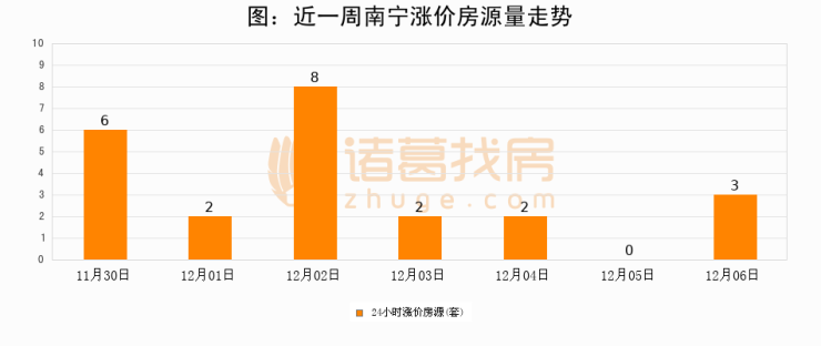根据诸葛找房数据显示,南宁24小时涨价房源量为3套,较12月05日增加3套,环比上涨0%。与此同时,涨价房源占比小幅扩大,业主信心有所提升。