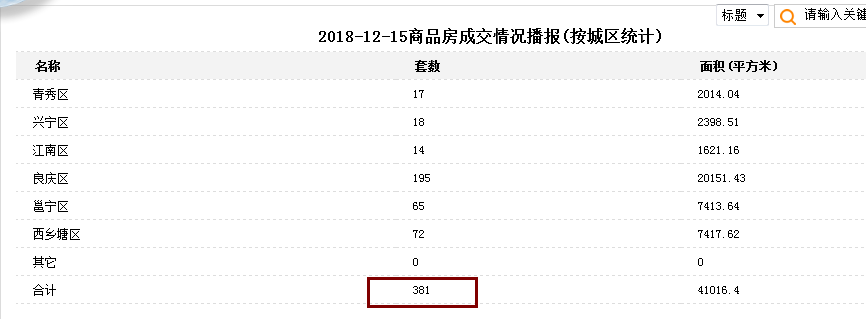 为了查验数据真实性,编辑查看了房产管理部门官方网站,但可惜的是目前南宁各大城区中,武鸣还没有列入统计。