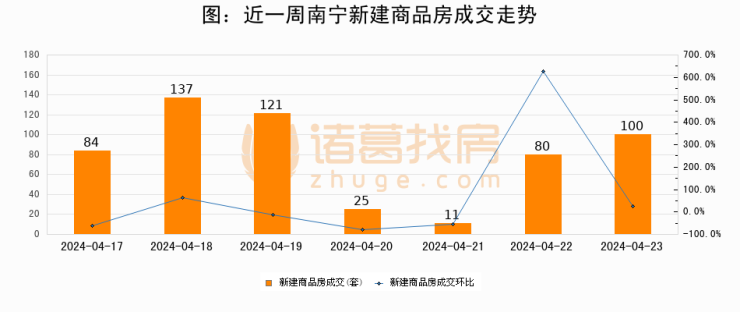 【南宁成交日报】04月23日新房成交100套、二手房137套;涨价房源49套