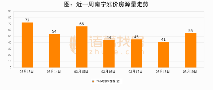 根据诸葛找房数据显示,南宁24小时涨价房源量为55套,较03月18日增加14套,环比上涨34.1%。与此同时,涨价房源占比小幅扩大,业主信心有所提升。
