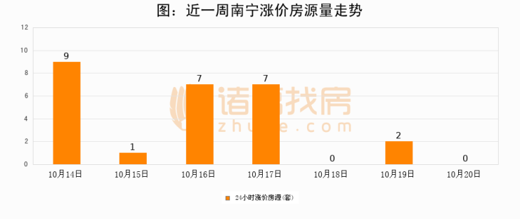 根据诸葛找房数据显示,南宁24小时涨价房源量为0套,较10月19日减少2套,环比下降100%。与此同时,涨价房源占比小幅回落,对于购房者来说是一个入市窗口期,购房者可抓住时机入市。