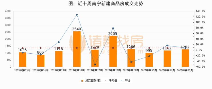 【南宁成交周报】第32周新房成交1252套,二手房738套,涨价房源225套