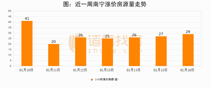 根据诸葛找房数据显示,南宁24小时涨价房源量为29套,较01月15日增加2套,环比上涨7.4%。与此同时,涨价房源占比小幅扩大,业主信心有所提升。