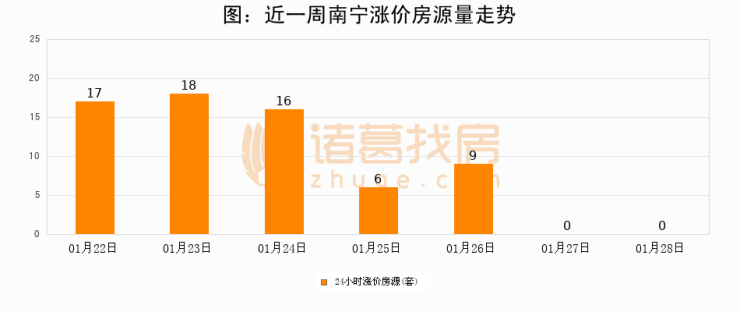 根据诸葛找房数据显示,南宁24小时涨价房源量为0套,较01月27日持平。