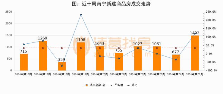 【南宁成交周报】第25周新房成交1492套,二手房922套,涨价房源187套