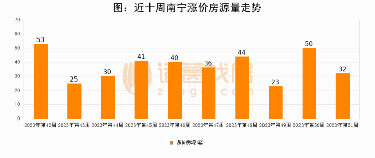 从调价房源来看,第51周南宁涨价房源32套,较上周下降36%。与此同时,51周涨价房源占比提升0.33个百分点,业主信心持续恢复。