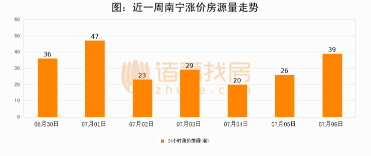 根据诸葛找房数据显示,南宁24小时涨价房源量为39套,较07月05日增加13套,环比上涨50%。与此同时,涨价房源占比小幅扩大,业主信心有所提升。