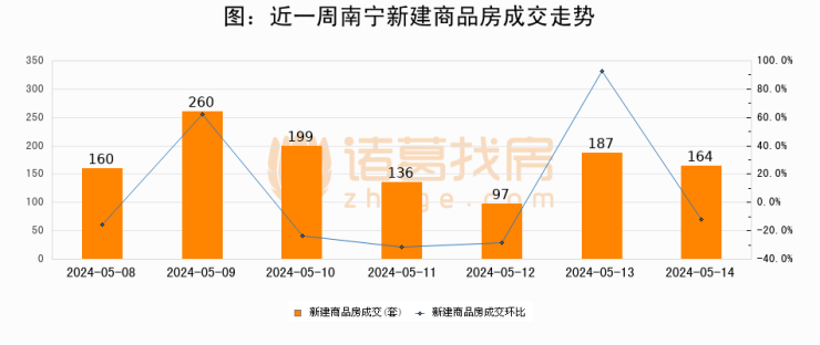 【南宁成交日报】05月14日新房成交164套、二手房130套;涨价房源24套