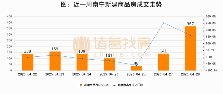 【南宁成交日报】04月28日新房成交367套、二手房210套;涨价房源40套