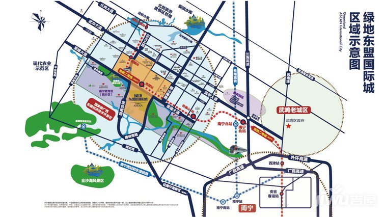 绿地·东盟国际城是绿地集团携手国际知名规划公司阿特金斯以超前视野磅礴造城,将以“北城南镇、城镇相依”为规划理念,聚合区域七大叠加红利,整合全球资源,项目涵盖“大教育、大商业、大颐养”三大产业。三心造极,千亿造城,形成文化商业、休闲商务、体育运动、精英聚落、滨水生态、智慧创意6大特色板块。在城市发展战略、发展方向、产业布局等方面,绿地·东盟国际城坐享南宁北城市发展红利,成就繁华的南宁北新中心。