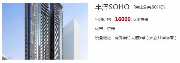动态:丰泽SOHO目前在推39-116㎡带装修现房公寓,产权70年,参考均价16000元/㎡,预计5月份开盘