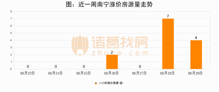 根据诸葛找房数据显示,南宁24小时涨价房源量为4套,较08月28日减少3套,环比下降42.9%。与此同时,涨价房源占比小幅回落,对于购房者来说是一个入市窗口期,购房者可抓住时机入市。