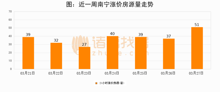 根据诸葛找房数据显示,南宁24小时涨价房源量为51套,较03月26日增加14套,环比上涨37.8%。与此同时,涨价房源占比小幅扩大,业主信心有所提升。