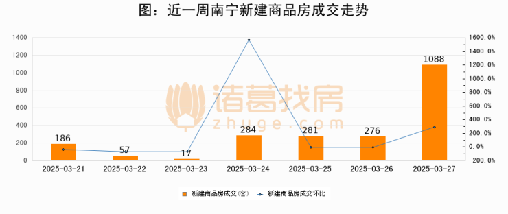 【南宁成交日报】03月27日新房成交1088套、二手房264套;涨价房源51套