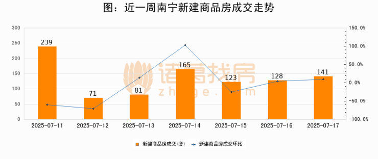【南宁成交日报】07月17日新房成交141套、二手房159套;涨价房源35套