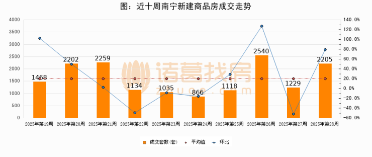 【南宁成交周报】第28周新房成交2205套,二手房149套,涨价房源218套
