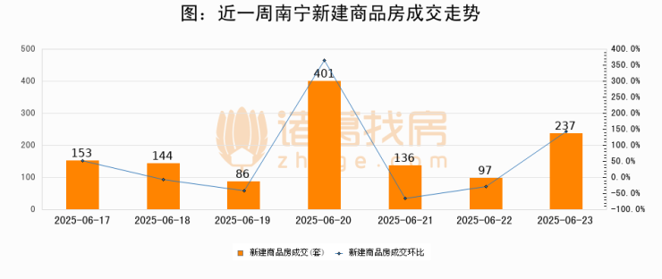【南宁成交日报】06月23日新房成交237套、二手房191套;涨价房源25套