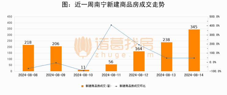 【南宁成交日报】08月14日新房成交345套、二手房135套;涨价房源23套