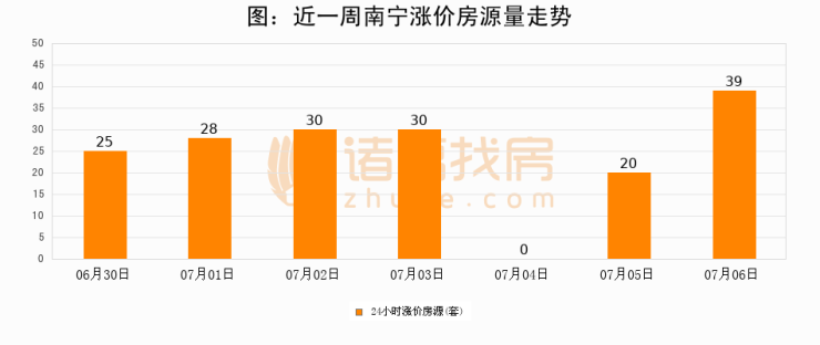 根据诸葛找房数据显示,南宁24小时涨价房源量为39套,较07月05日增加19套,环比上涨95%。与此同时,涨价房源占比小幅扩大,业主信心有所提升。
