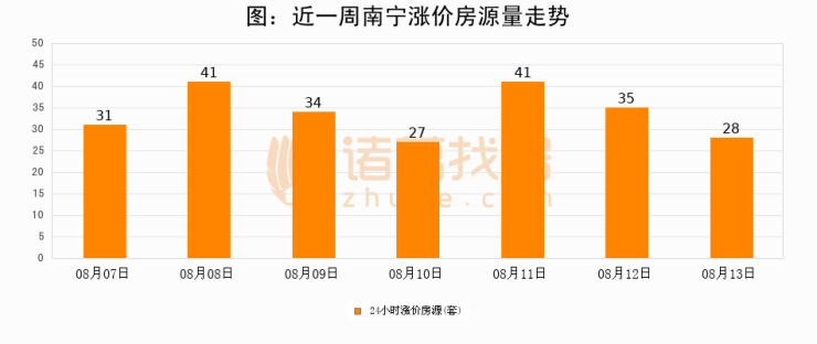 根据诸葛找房数据显示,南宁24小时涨价房源量为28套,较08月12日减少7套,环比下降20%。与此同时,涨价房源占比小幅回落,对于购房者来说是一个入市窗口期,购房者可抓住时机入市。