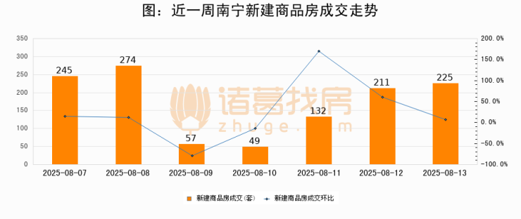 【南宁成交日报】08月13日新房成交225套、二手房158套;涨价房源28套