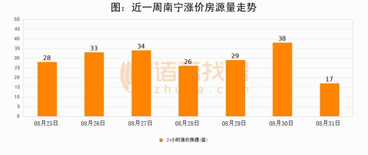 根据诸葛找房数据显示,南宁24小时涨价房源量为17套,较08月30日减少21套,环比下降55.3%。与此同时,涨价房源占比小幅回落,对于购房者来说是一个入市窗口期,购房者可抓住时机入市。