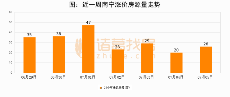 根据诸葛找房数据显示,南宁24小时涨价房源量为26套,较07月04日增加6套,环比上涨30%。与此同时,涨价房源占比小幅扩大,业主信心有所提升。