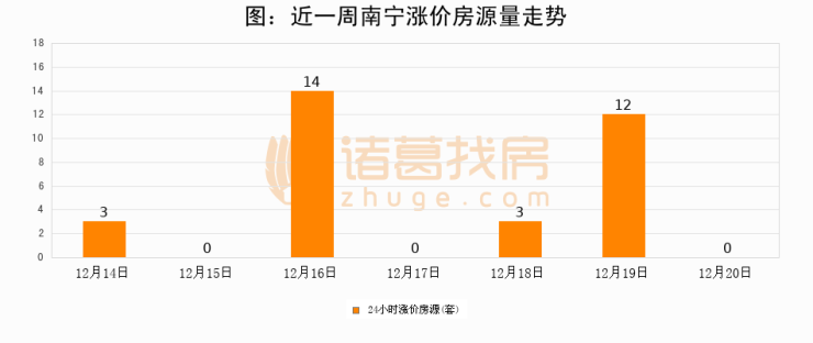 根据诸葛找房数据显示,南宁24小时涨价房源量为0套,较12月19日减少12套,环比下降100%。与此同时,涨价房源占比小幅回落,对于购房者来说是一个入市窗口期,购房者可抓住时机入市。