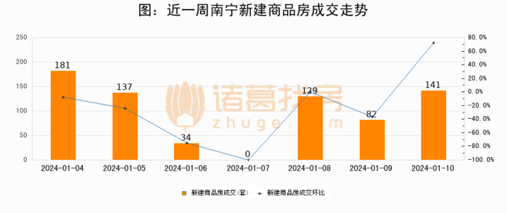 【南宁成交日报】01月10日新房成交141套、二手房78套;涨价房源33套