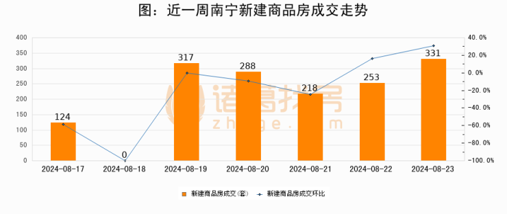 【南宁成交日报】08月23日新房成交331套、二手房132套;涨价房源35套