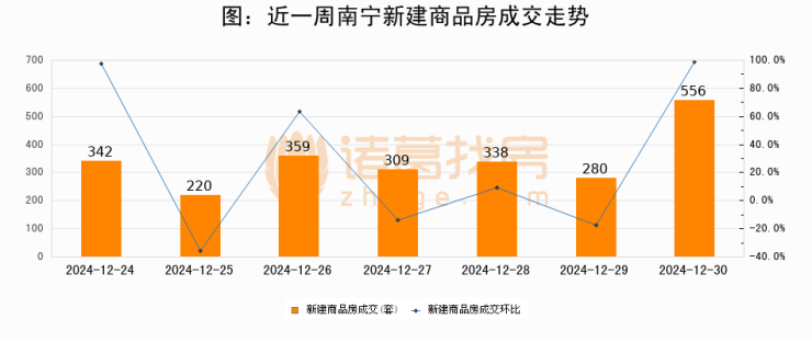 【南宁成交日报】12月30日新房成交556套、二手房732套;涨价房源23套