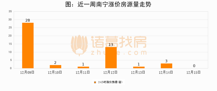 根据诸葛找房数据显示,南宁24小时涨价房源量为0套,较12月14日减少3套,环比下降100%。与此同时,涨价房源占比小幅回落,对于购房者来说是一个入市窗口期,购房者可抓住时机入市。