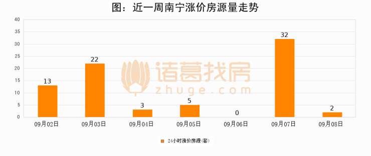 根据诸葛找房数据显示,南宁24小时涨价房源量为2套,较09月07日减少30套,环比下降93.8%。与此同时,涨价房源占比小幅回落,对于购房者来说是一个入市窗口期,购房者可抓住时机入市。