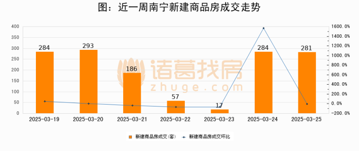 【南宁成交日报】03月25日新房成交281套、二手房173套;涨价房源39套
