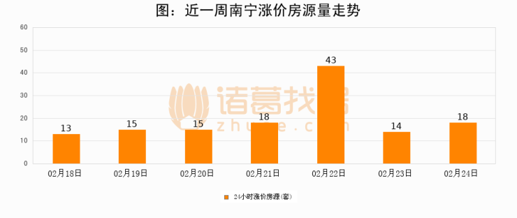 根据诸葛找房数据显示,南宁24小时涨价房源量为18套,较02月23日增加4套,环比上涨28.6%。与此同时,涨价房源占比小幅扩大,业主信心有所提升。